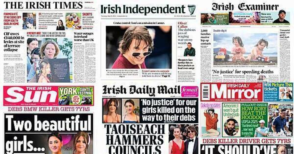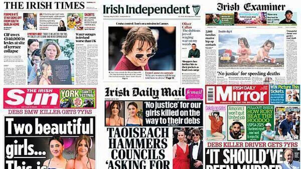 The Irish Sun, Irish Examiner, Irish Daily Mirror and Irish Daily Star all cover the jailing of a man for dangerous driving causing the deaths of two teenagers in Co Monaghan.