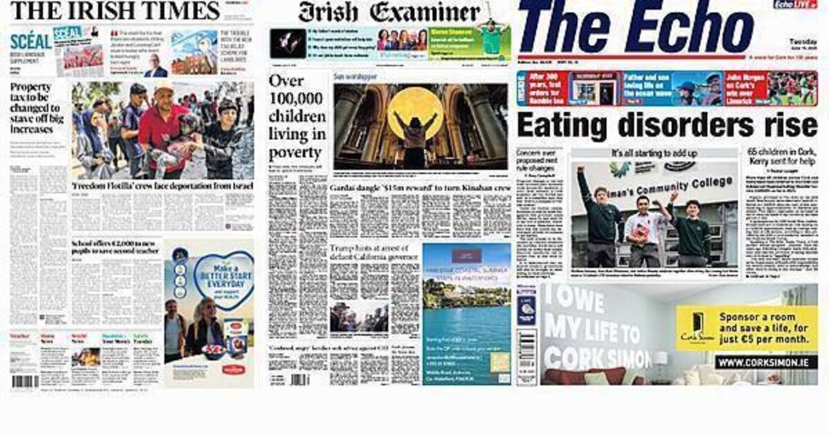 Tuesday's front pages focus on a range of stories from local property tax seeing a modest increase next year to a new report showing over 100,000 children are living in poverty across Ireland.