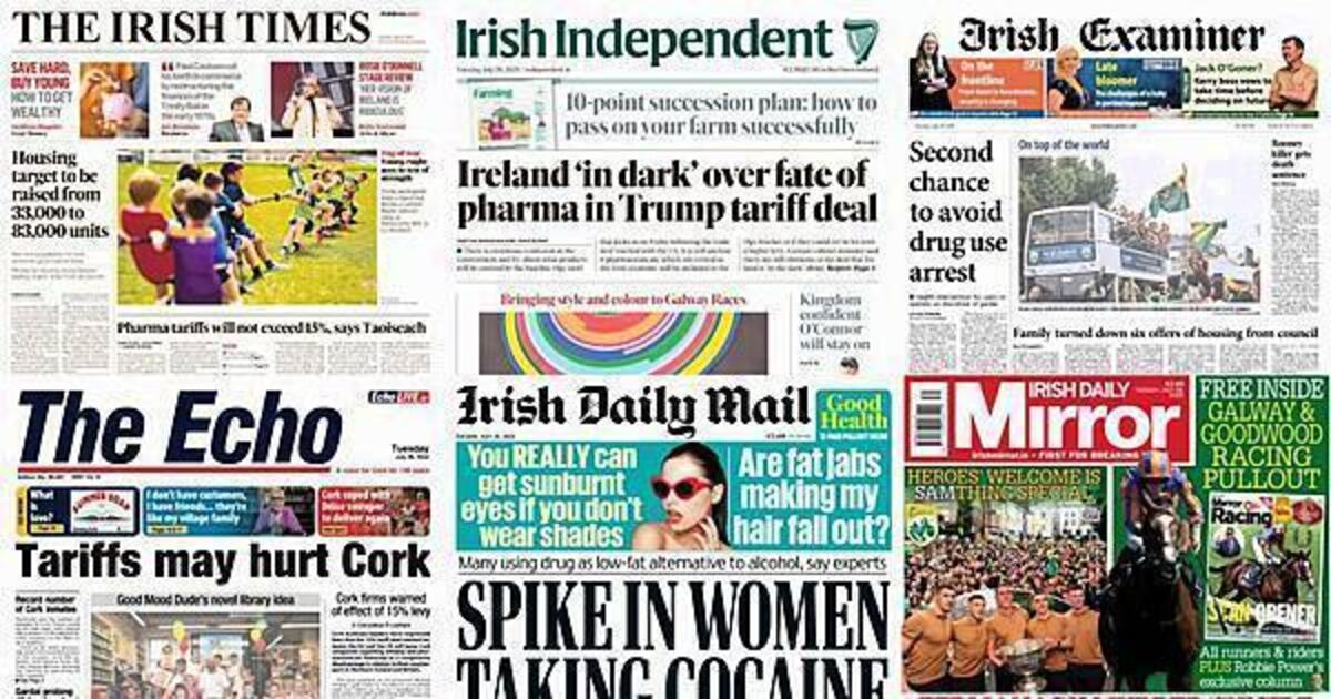 The Irish Independent says there is confusion in the Government and the EU about what products will be covered by the baseline 15 per cent tariff which activates on Friday following the US trade deal.