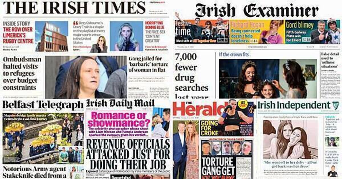 The Irish Times lead with the Ombudsman for Children suspending regular visits to hear concerns from asylum seekers living in direct provision centres over budget constraints, a gang being jailed for the 'barbaric' torture of a woman in a Dublin flat, and the Government moving ahead with triple lock reform in autumn.