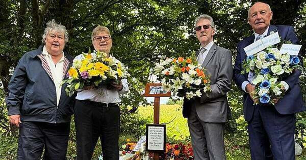 Survivors Des Lee and Stephen Travers were among those who gathered at the roadside where the atrocity happened on Thursday to remember their bandmates.