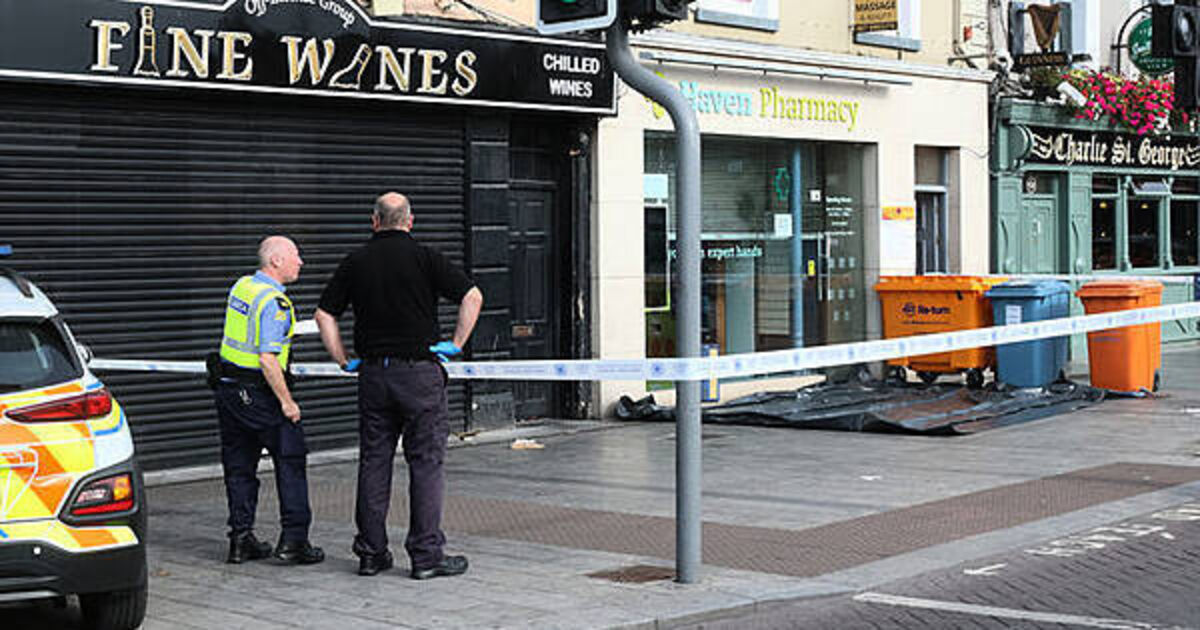 A section of footpath outside an off-licence and a pharmacy remained cordoned off by gardaí on Thursday morning.