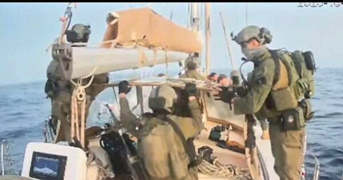 Israeli navy soldiers board one of the flotilla vessels (Global Sumud Flottila via AP)