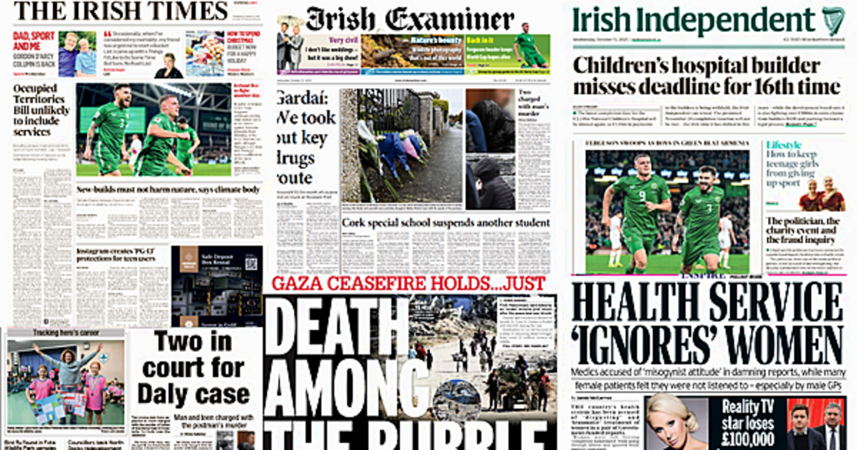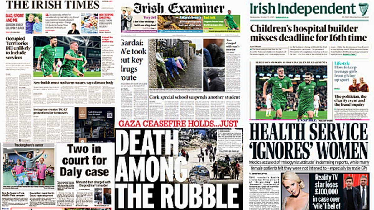 The Irish Times leads with Taoiseach Micheál Martin admitting in the Dáil that the Occupied Territories Bill is unlikely to include services.