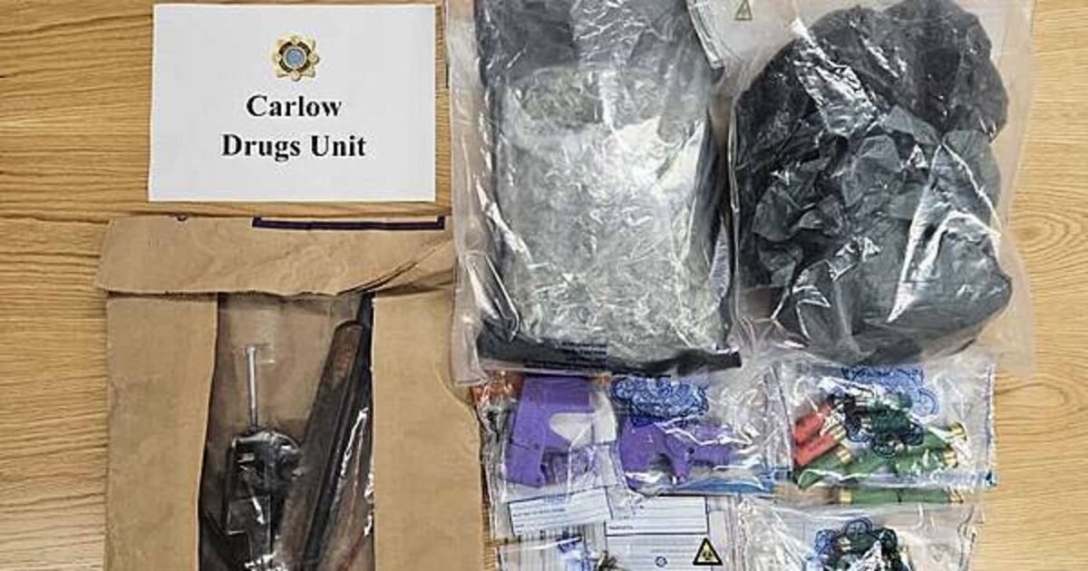 Two men in their 40s have been arrested after gardaí seized a viable suspect device, four firearms, and drugs worth an estimated €45,000 in Co Carlow.