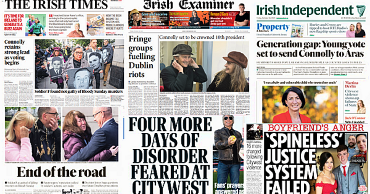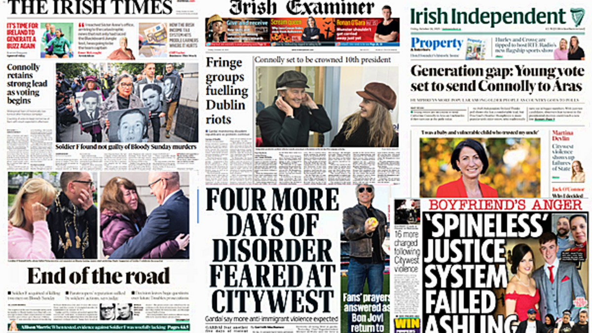Voting begins in the Presidential election, and Soldier F found not guilty for murders on Bloody Sunday make the front pages of Friday's papers.