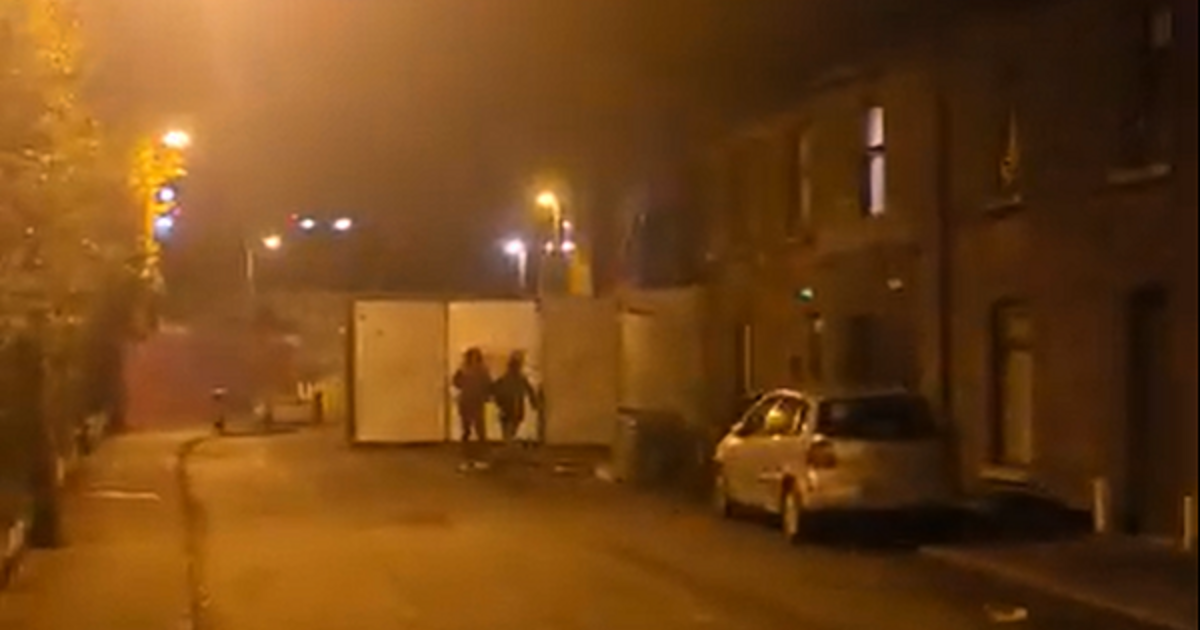 Six wheelie bins and wood pallets were also set on fire on the laneway. People could be heard shouting “Get them out”.