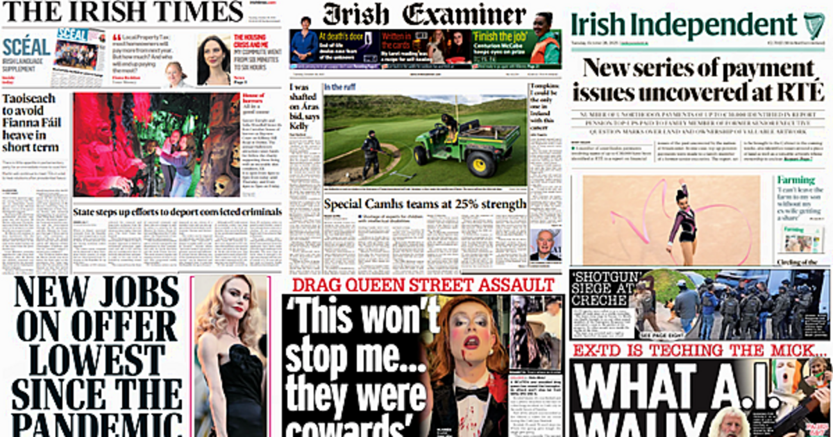 The fallout from the Presidential election, and new payment scandals at RTÉ, make the front pages of Tuesday's papers.