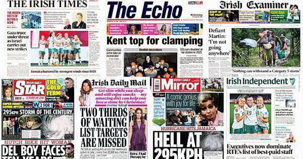 Here are the stories making headlines on the front pages of Irish newspapers on Wednesday.