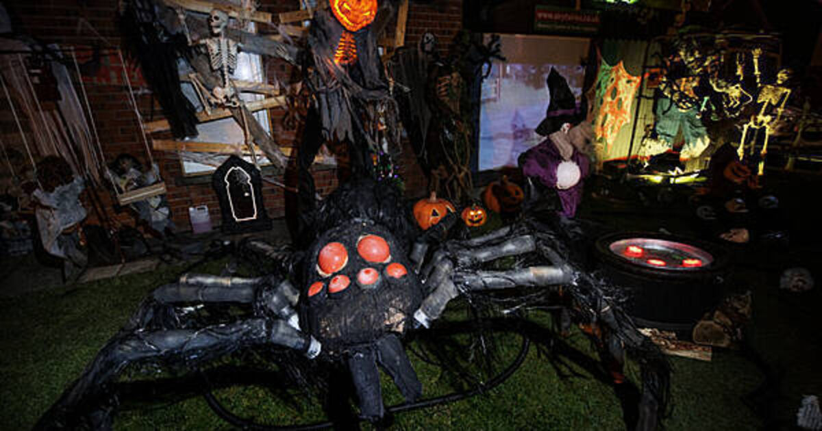 The elaborate decorations include some jump scares, and the couple said they have had just as many adults coming to enjoy the festivities as children.