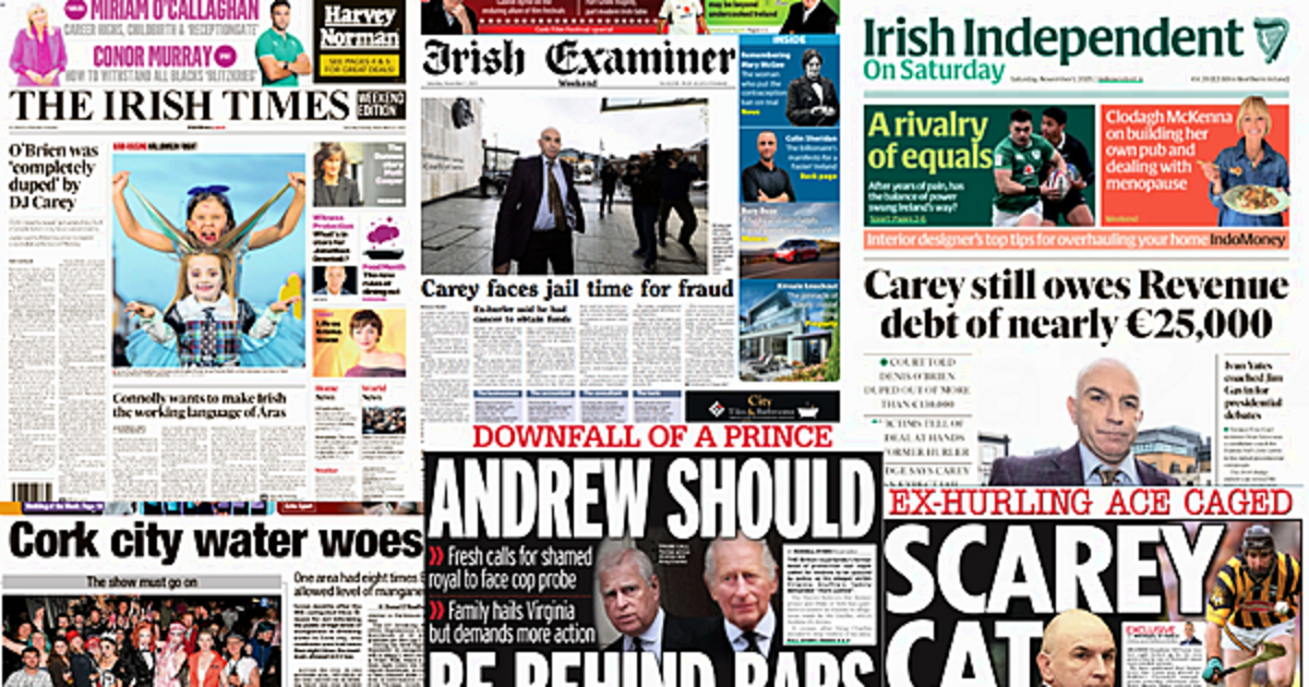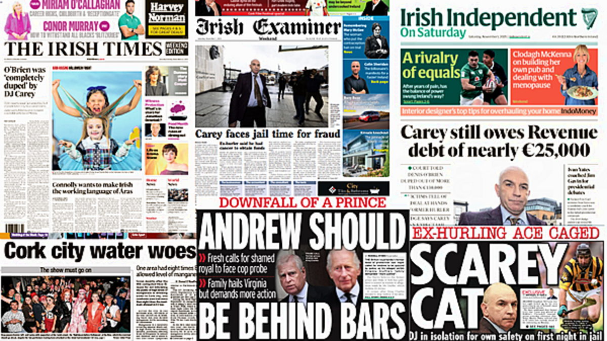 The Irish Examiner also leads with DJ Carey, as he is set for jail time for fraud.