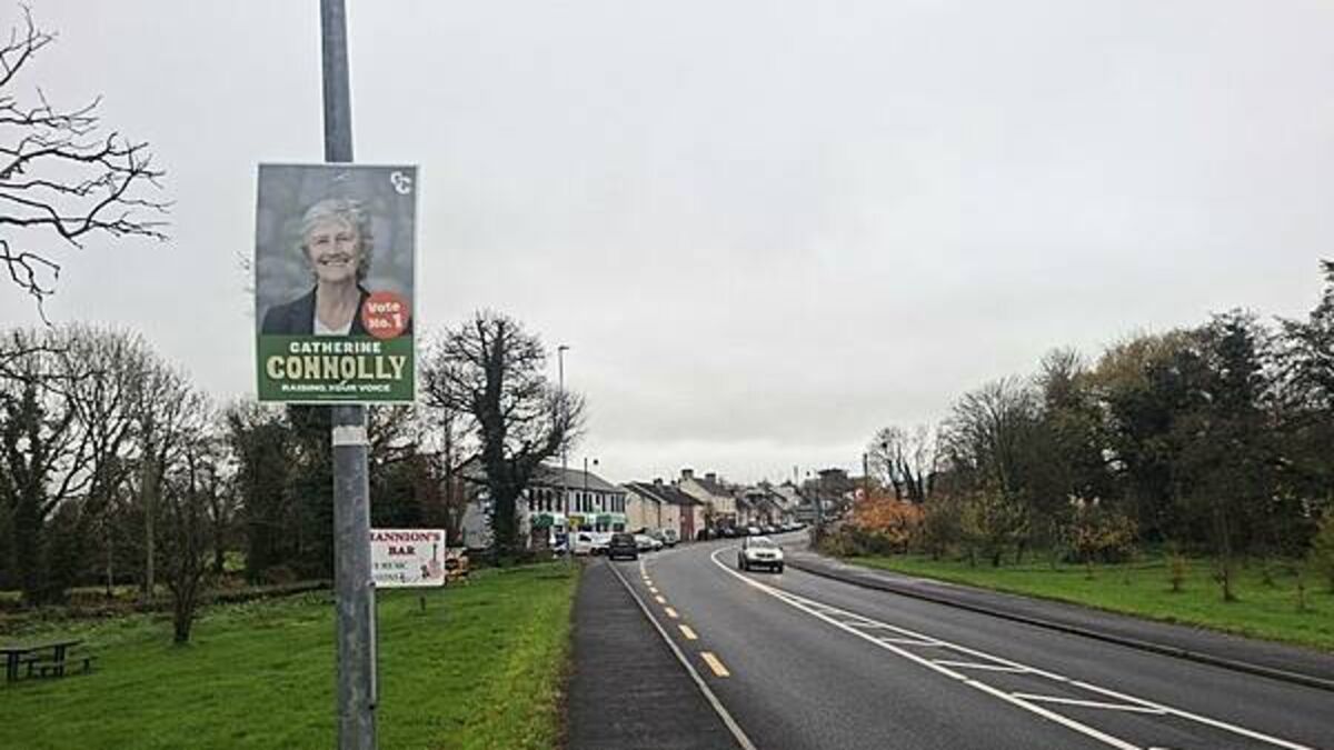 Several Catherine Connolly posters remain on lampposts in Balla, Co Mayo, while others have also been spotted in recent days in the nearby town of Castlebar.