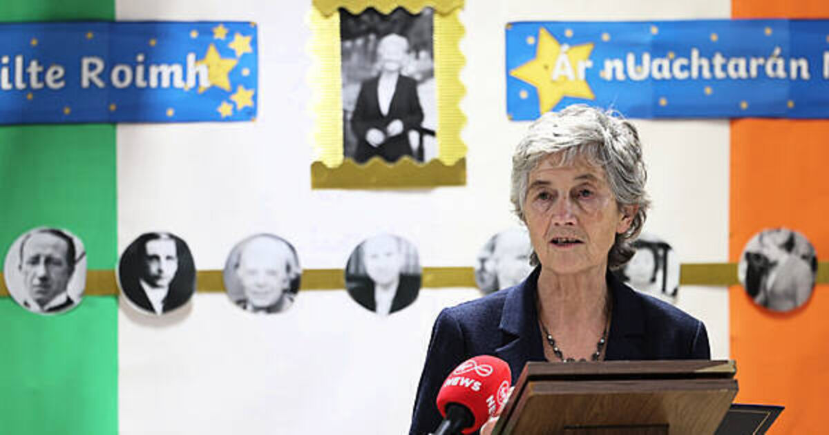 President Catherine Connolly visited an Irish language school in Dublin on her first official engagement.