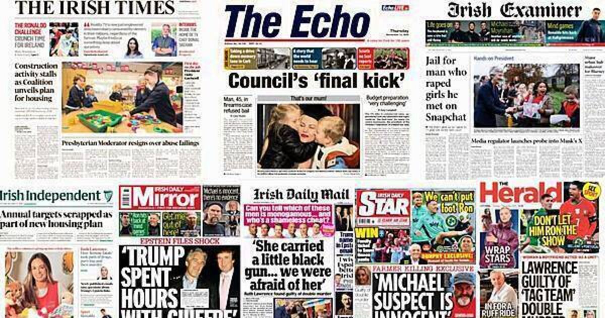 Here are the stories making headlines on the front pages of Irish newspapers this Thursday.