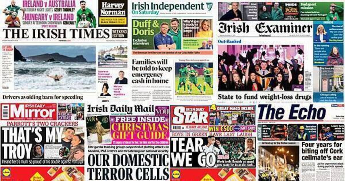 The Irish Independent lead with families being told to leave a small amount of cash permanently at home for use in case of emergencies, such as a power outage or cyber attack