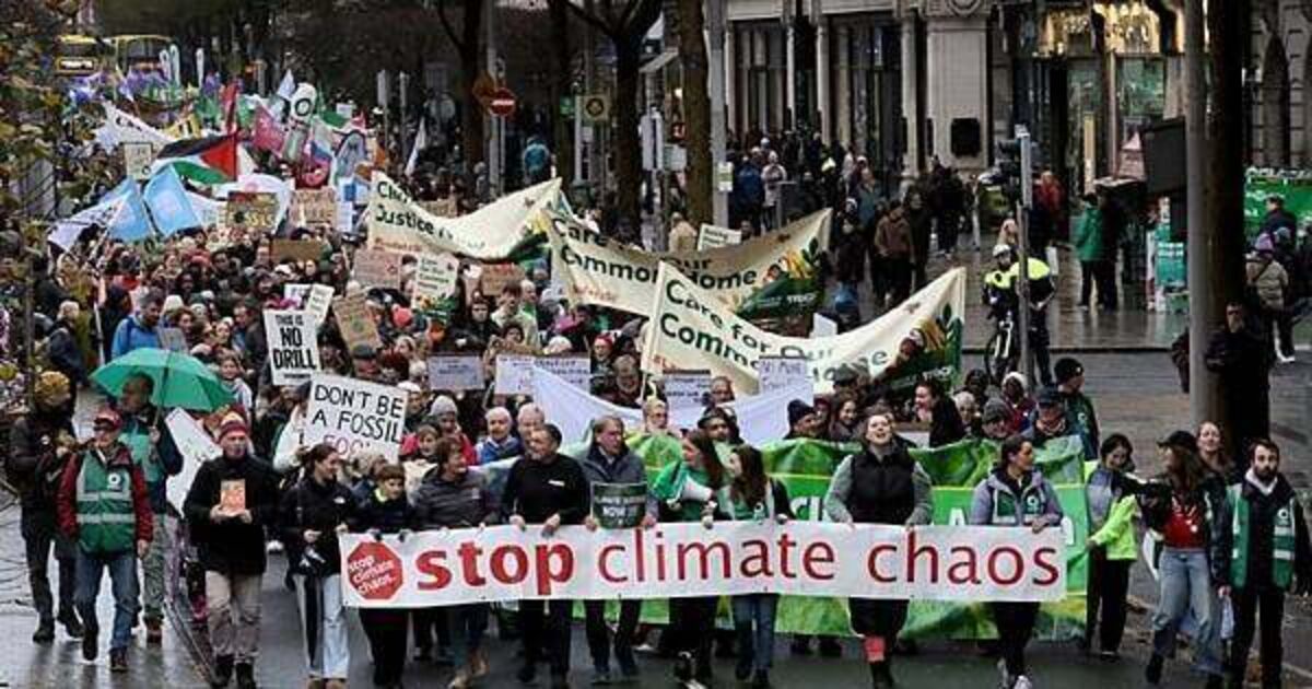 Bad weather was no deterrent for hundreds of people who took to the streets of Dublin to call on the Government to "put people and nature before big polluters" in today’s national climate march.