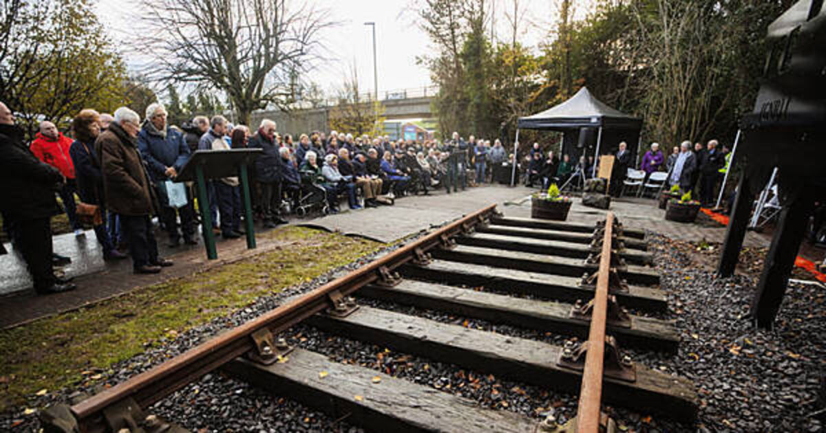 50th anniversary memorial plague at a remembrance service at the Omagh Rail Tragedy Memorial in Omagh to mark the 75th anniversary of the tragedy (Liam McBurney/PA)