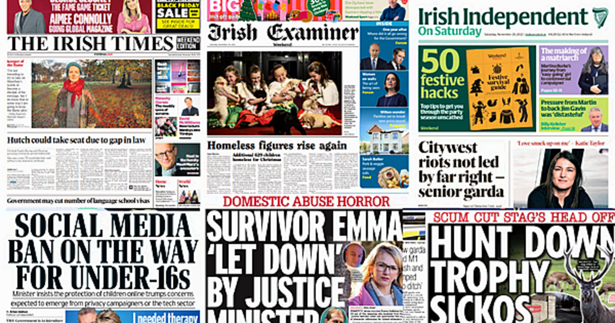 Record homeless figures and a potential ban for under-16s on social media make the front pages of Saturday's papers.