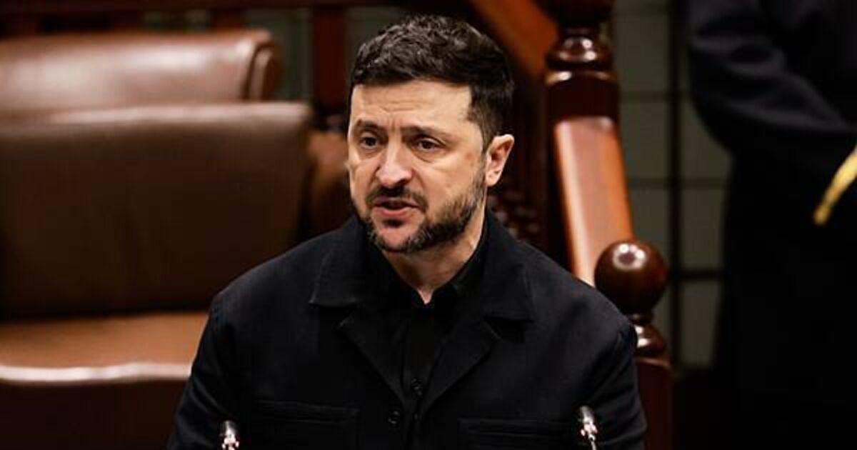 Ukrainian president Volodymyr Zelensky leaving after addressing a joint sitting of the Irish parliament in the Dail chamber