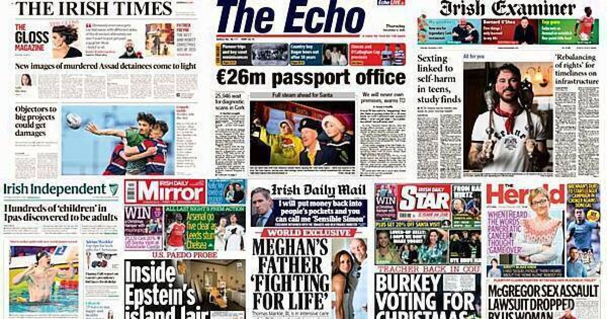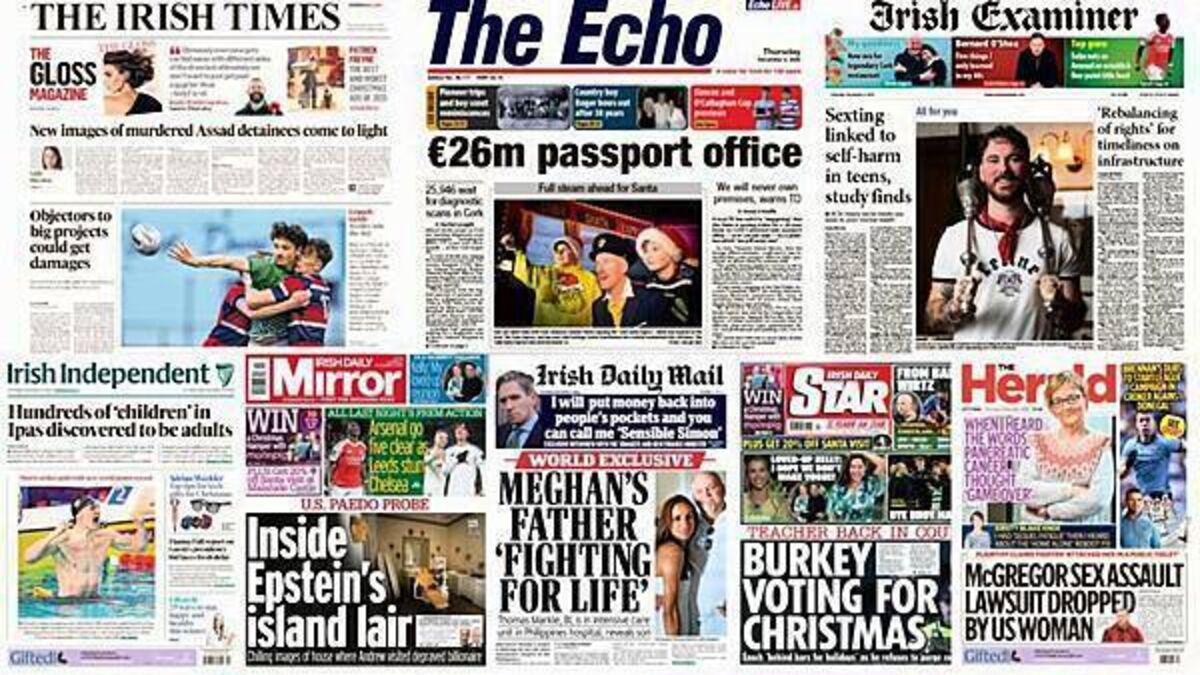 A range of stories feature on the front pages of Irish newspapers on Thursday.