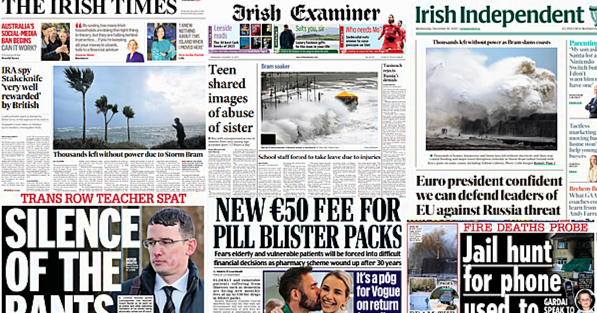 The Irish Examiner leads with a teenager who was sentenced for abusing his sister, as he shared images of the abuse.