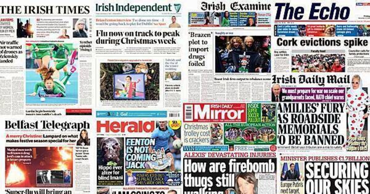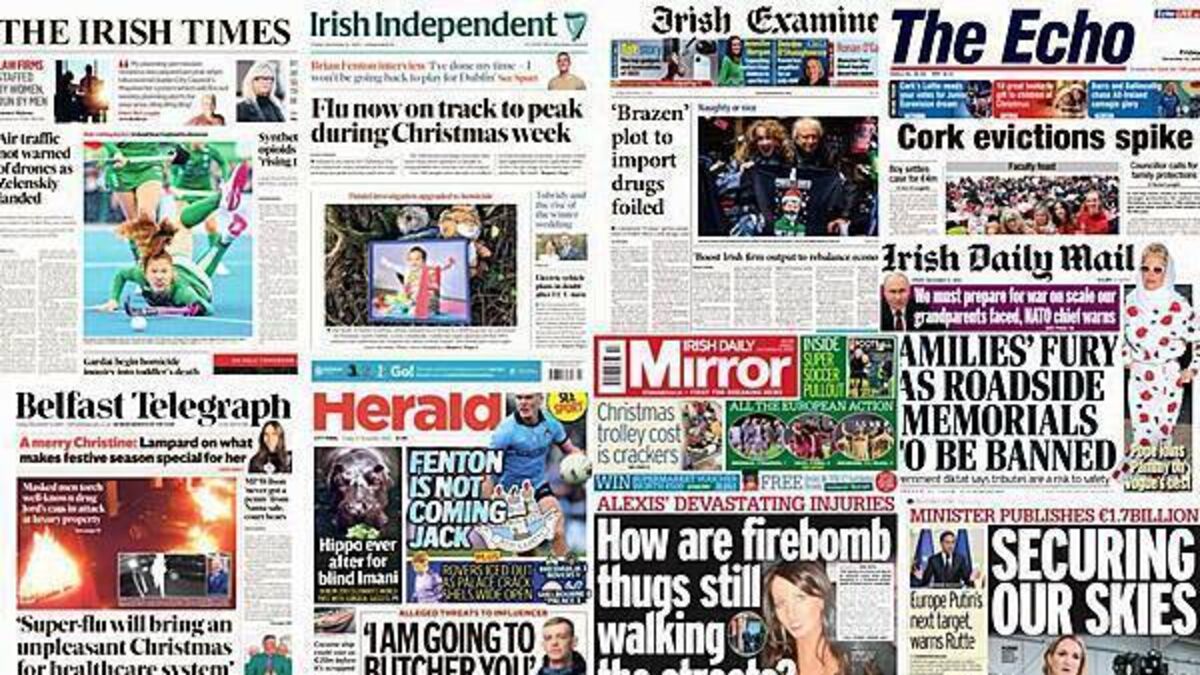 The Irish Times leads with how air traffic controllers were not warned about the presence of drones during the Ukrainian president's visit, meaning that pilots were also not aware. They also look at the rise of synthetic opioids last year, which have caused an increasing number of deaths. And finally, a homicide investigation has been launched into the death of toddler Daniel Aruebose, whose remains were found buried in Donabate earlier this year.