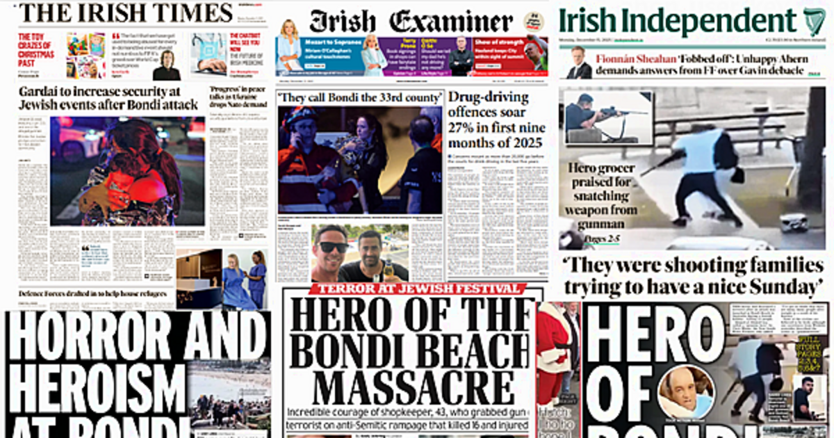 The Irish Times lead with gardaí increasing security at Jewish events after the attack in Australia.