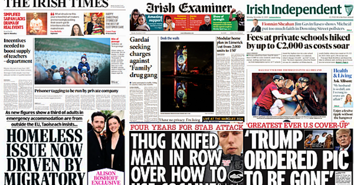 The Irish Independent leads with fees at private schools increasing by up to €2,000.