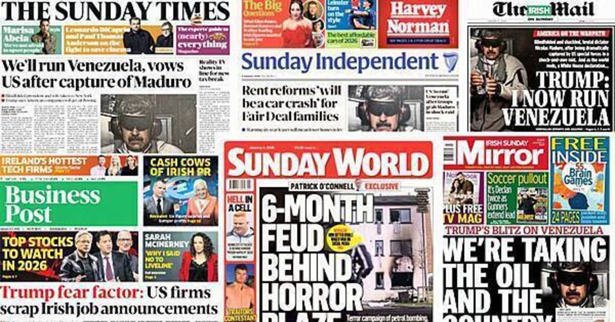 The Irish Sunday Mirror reports on the daring raid and capture of Venezuelan leader Nicolás Maduro on Saturday morning. US President Donald Trump has subsequently announced that the US will run the country until there can be a "safe transition".