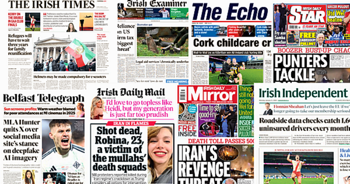 The Irish Daily Mirror covers the protests in Iran, and how the nation has threatened retaliatory attacks should the US interfere with the unrest that has seen over 500 people killed and more than 10,000 arrested.