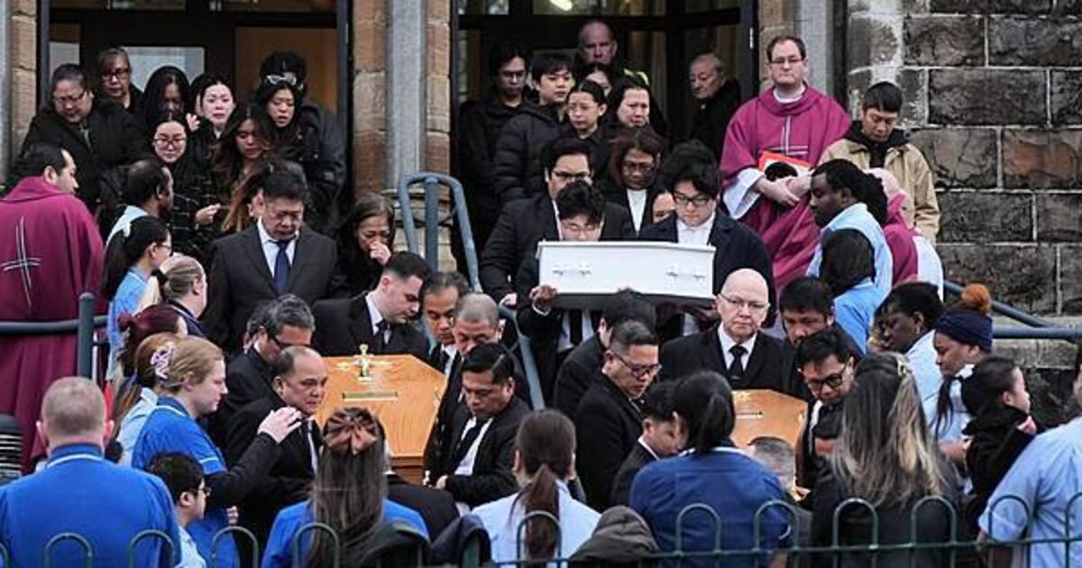 Healthcare workers formed a guard of honour at the funeral of Ralph Anthony Singco, Cathrene Kith Quinones Singco, and their unborn daughter Kate.