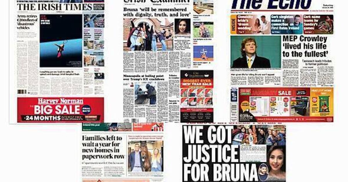 Saturday's front pages focus on a range of stories, from the Defence Forces quietly retiring its fleet of 27 light armoured vehicles to a man being given life in prison for the murder of Bruna Fonseca.