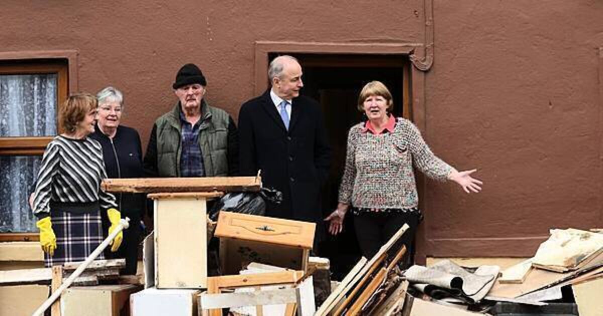 Mr Martin met residents of Island Road, Enniscorthy, an area that was badly hit by flooding in recent weeks after the River Slaney burst its banks during Storm Chandra.
