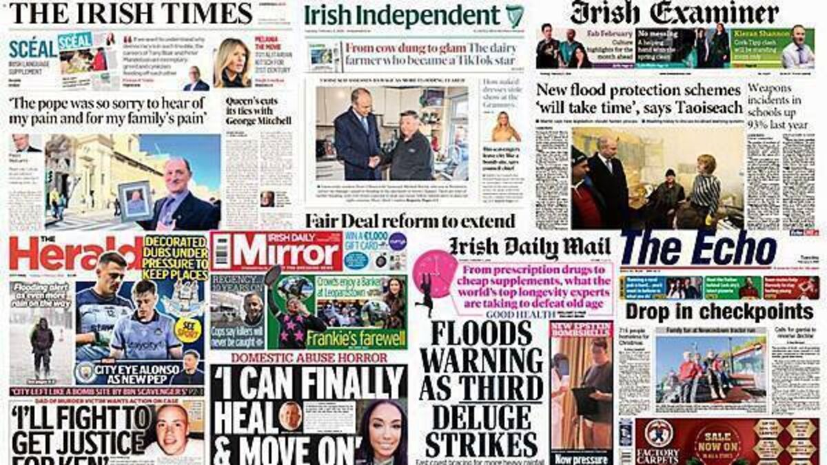 Various stories feature on Irish front pages on Tuesday morning, including a few about the weather.