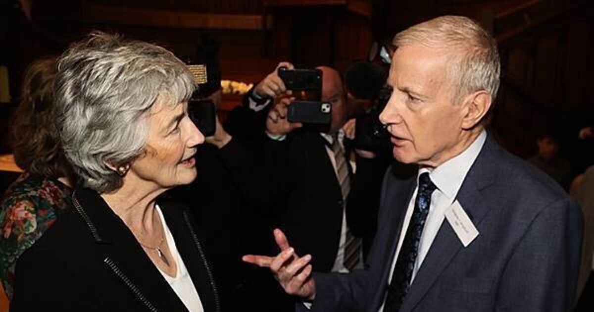 President of Ireland Catherine Connolly shakes hands with Democratic Unionist Party MP for East Derry Gregory Campbell. Photo:  Liam McBurney/PA.
