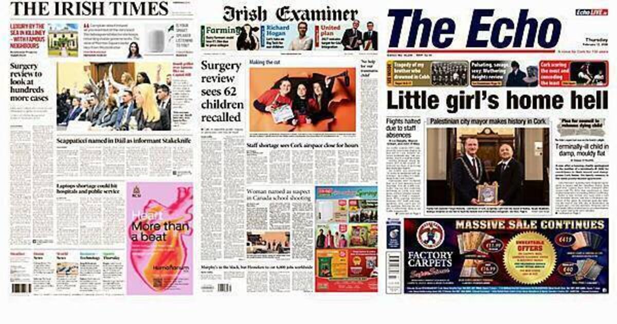 Thursday's front pages focus on a range of stories, from changes to the scope of the review of orthopaedic surgery to a terminally ill child remaining in a poorly heated apartment.