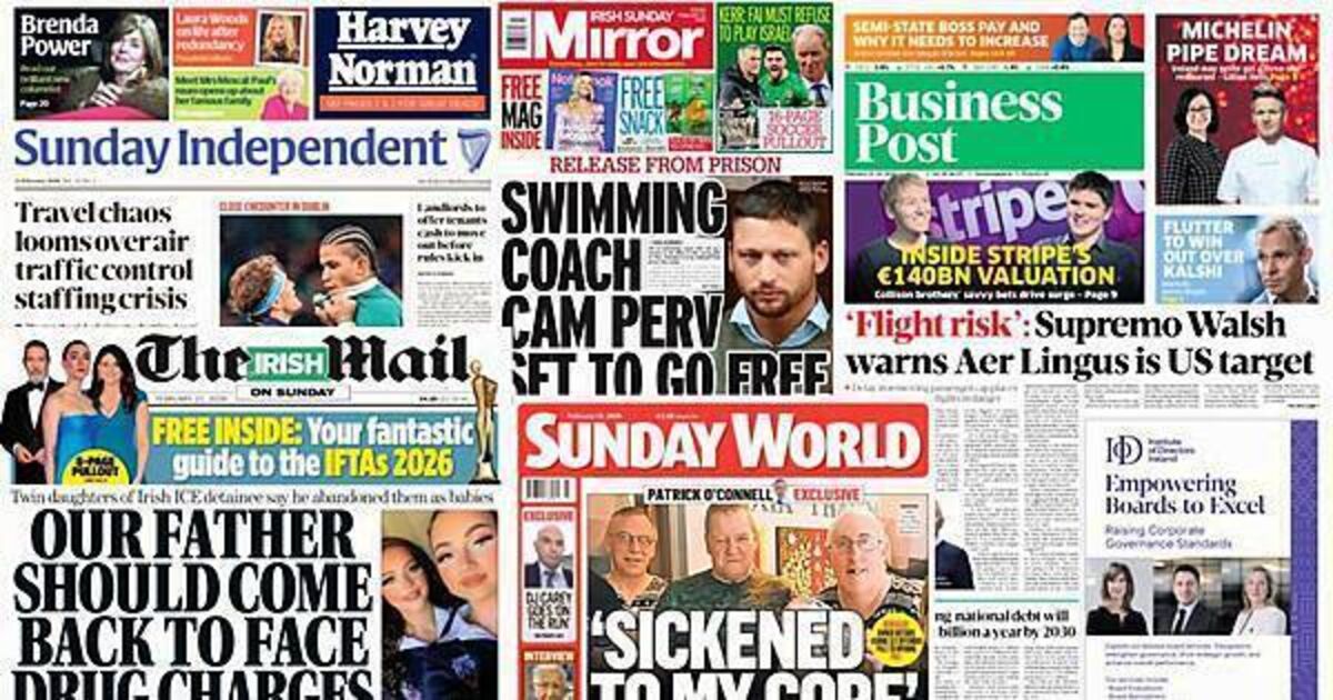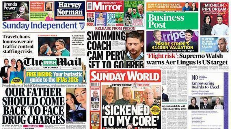 A variety of stories feature on Sunday's front pages, from the Dublin Airport passenger cap to the children of an Irishman detained by ice speaking out.