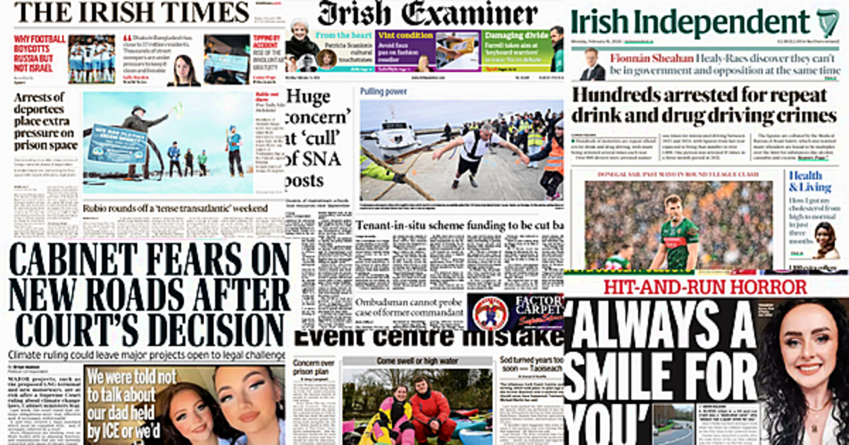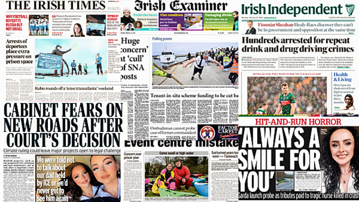 The Irish Daily Mail leads with fears from the Government that new roads and major projects could be at risk following a Supreme Court decision on climate change laws.