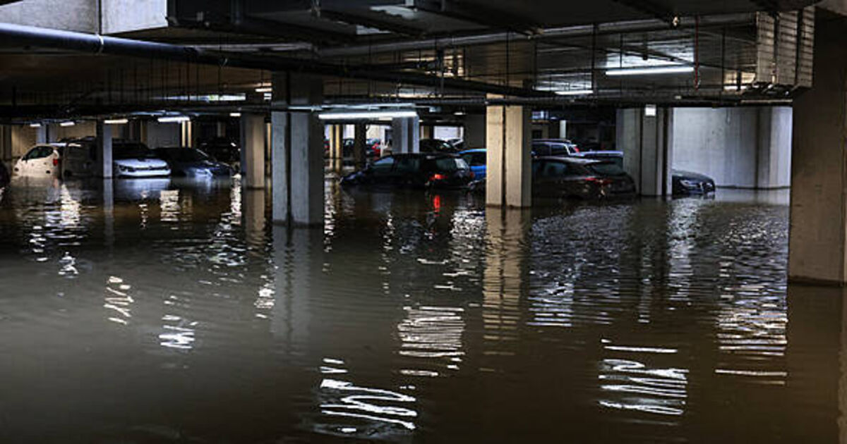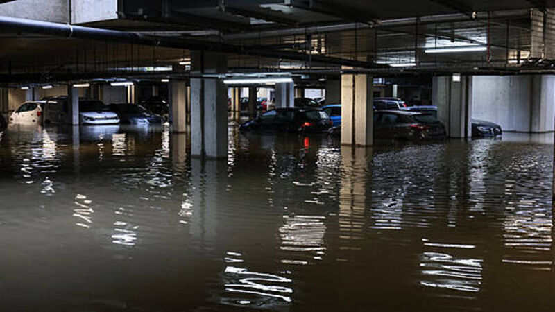 Floodwater covers a park in north Dublin