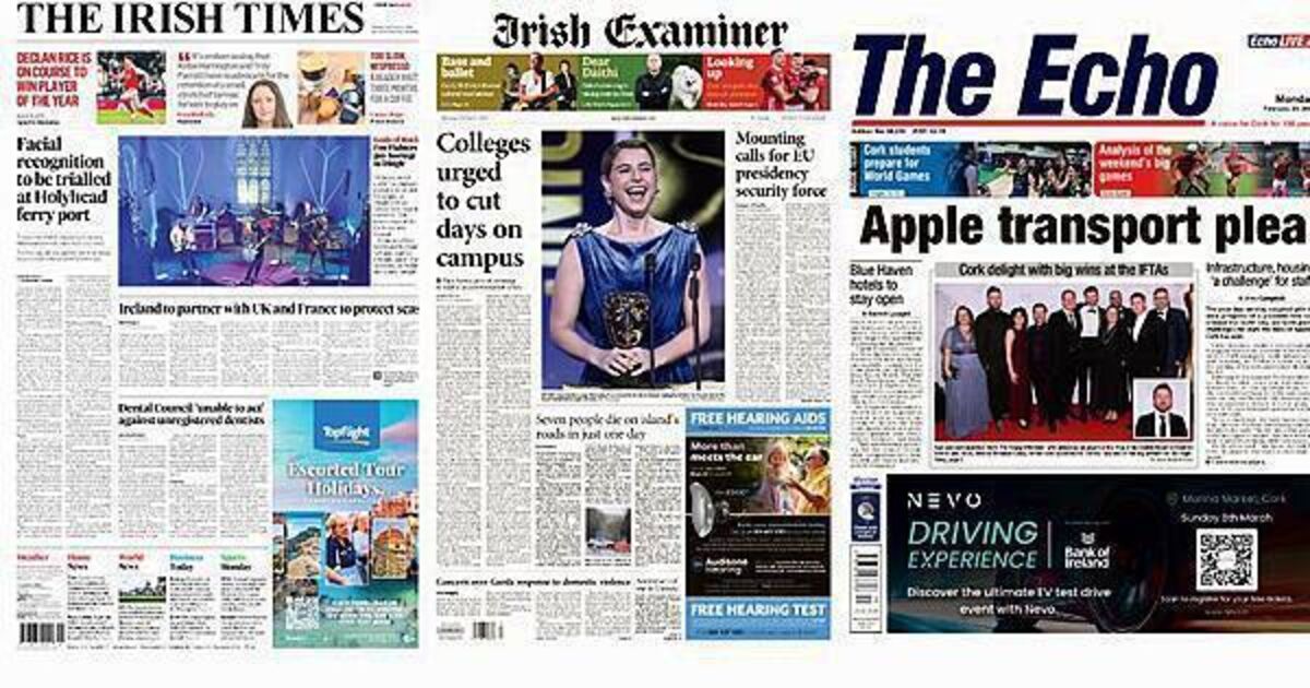 Monday's front pages focus on a range of stories, from facial recognition technology being trialled on passengers at Holyhead to colleges being urged to cut on-campus days.