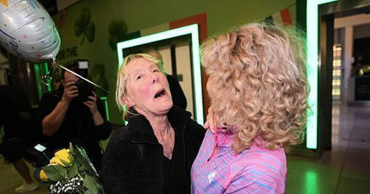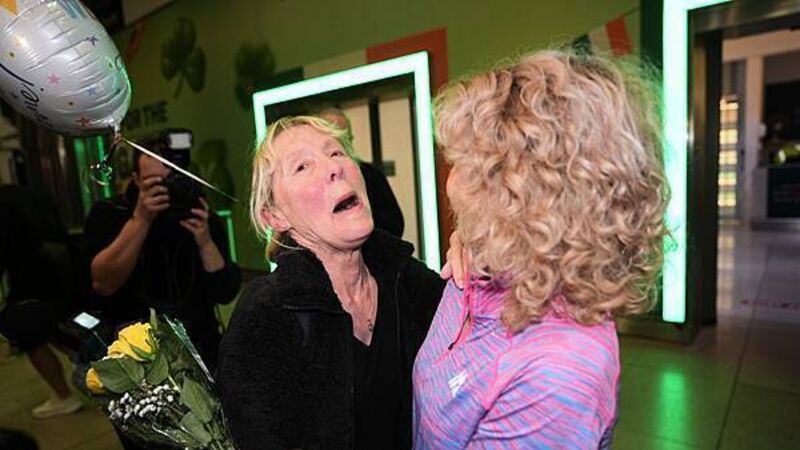 Elaine Gleeson from Limerick also surprised a family member, turning up with a balloon and flowers to welcome home her sister Norita Geary.