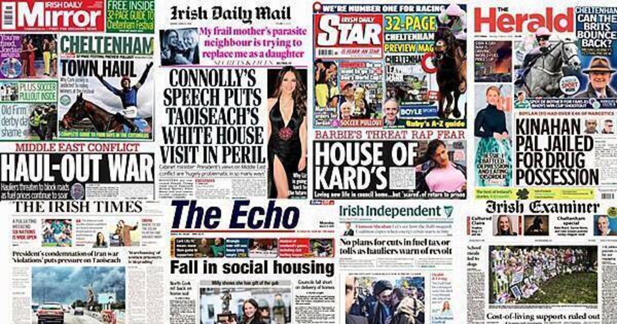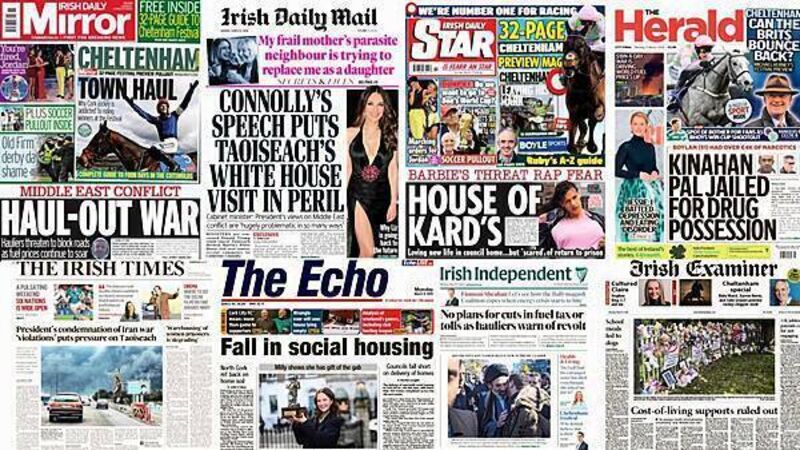 The Irish Examiner leads with the Government ruling out introducing cost-of-living supports and energy credits amid growing uncertainty about the economic impacts of the ongoing war in the Middle East.