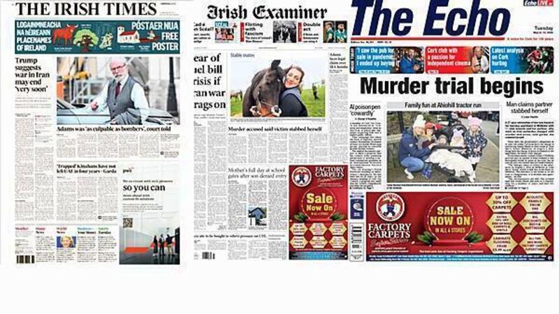 The Echo, meanwhile, focuses on a murder trial in Cork where a woman was found at her burning apartment in Midleton.