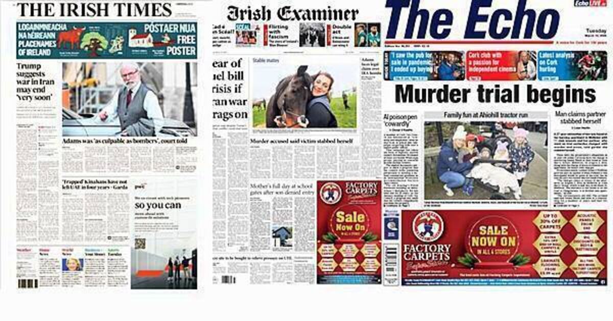 Tuesday's front pages focus on a range of stories from Trump suggesting the war in Iran may end 'very soon' to a fear of fuel bills increasing if the war drags on.