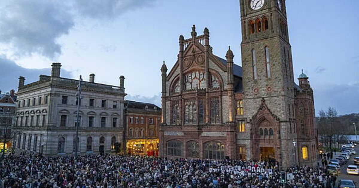 People attend a vigil for Amy Doherty at the Guildhall in Londonderry/ Photo: Aodhan Roberts/PA.