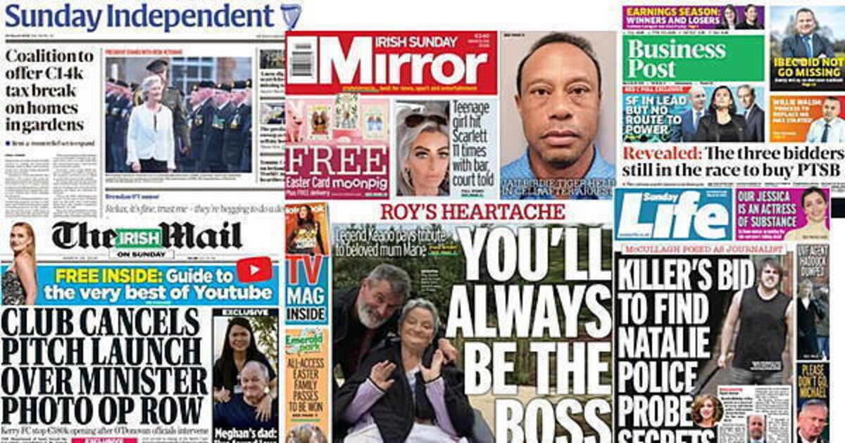 The Irish Sunday Mirror leads with Roy Keane paying tribute to his mother following her death.