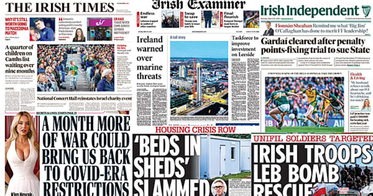 The Irish Examiner leads with warnings that Ireland’s critical marine infrastructure needs to be prepared for multiple possible attacks — from sabotage to cyber — as the damage to the economy and society could be “catastrophic”.