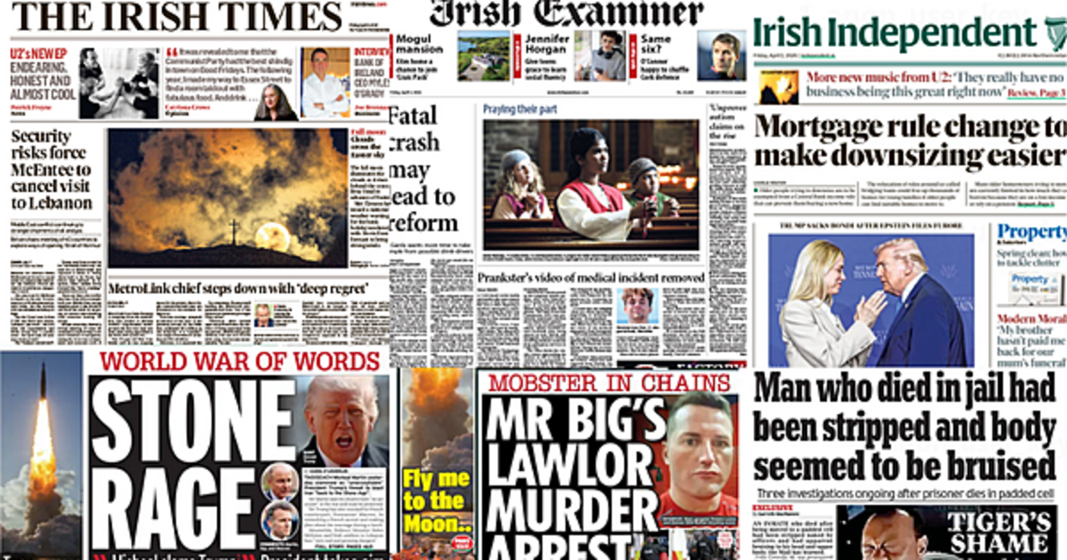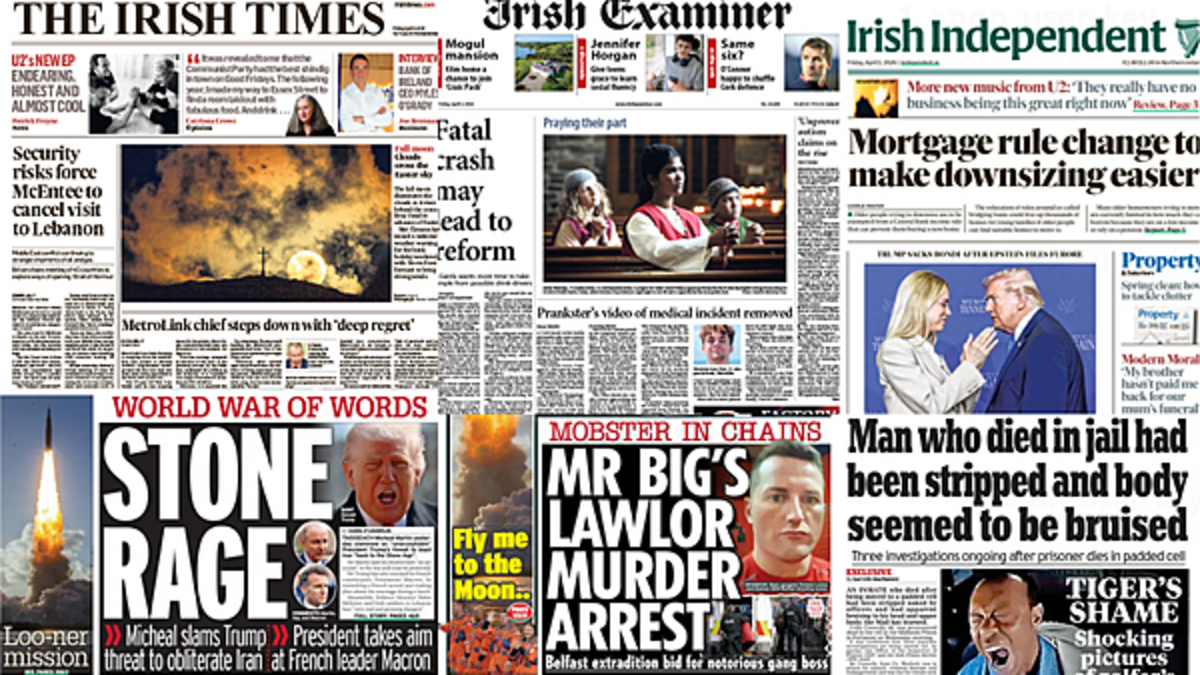 The Irish Daily Mirror leads with criticism from the Taoiseach over Donald Trump threatening to bomb Iran to the "stone age."