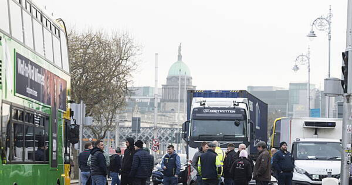 Gardaí have warned of possible road blocks to Dublin Airport and the Port Tunnel. Protestors have now blocked Fleet Street in Dublin, which was an access route.