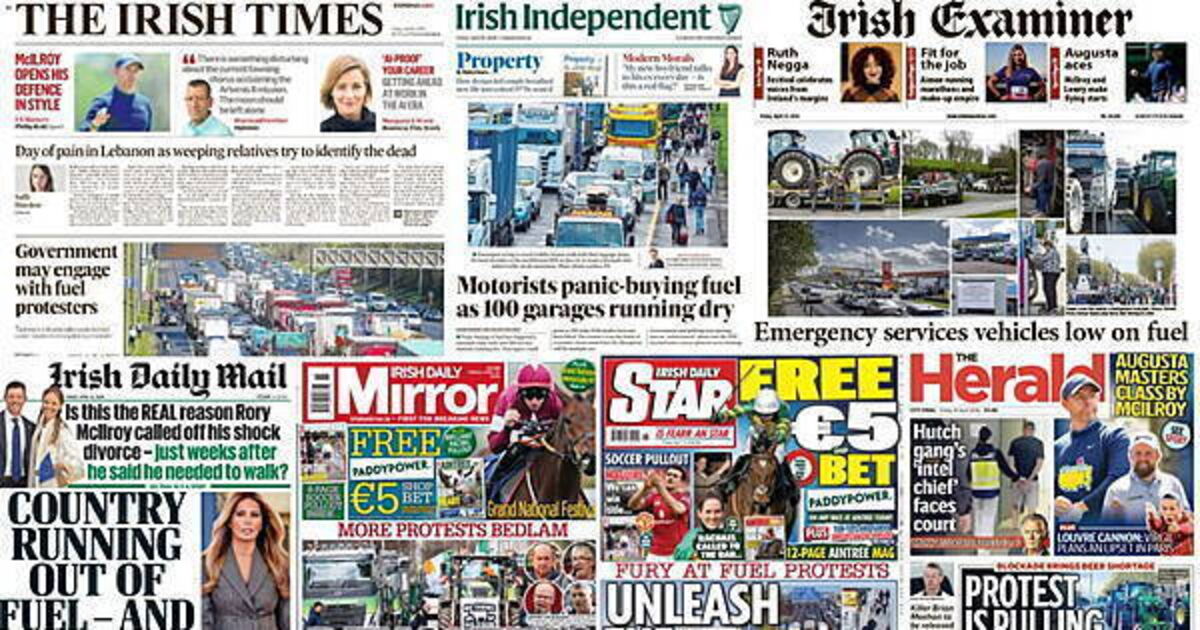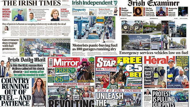 The ongoing fuel protests and their impacts dominate Irish front pages on Friday morning.
